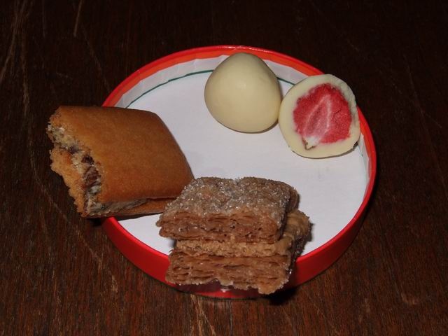 六花亭的藍姆葡萄夾心餅乾,咖啡奶油千層派及草莓白巧克力