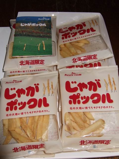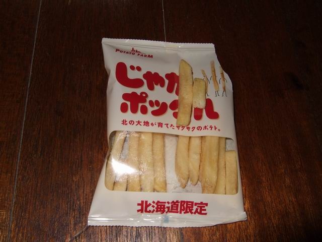 其他不重要的不提了,但是有一項隱藏商品非說不可,最後一天準備前往旭川機場搭機回台灣時,導遊在車上交代注意事項時突然說了一句,如果還有800日幣的人,等下可以到2樓去買薯條,一人只限買一包而已。到了機場以後,大家在那找了半天,也沒有看到啥傳說的薯條,5天來大大小小的商店逛那麼多,賣來賣去的東西不都那樣,哪有啥薯條啊。後來真的有人在其中一家看到,數量不多一轉眼就被掃光,排隊結帳的時候連日本人都還跟他說~喔以喜~好吃喔。就在帶著遺憾進去準備登機時,居然小小的免稅店有賣一盒800日幣,比外面的賣840還便宜,而且沒限定數量,趕緊也買了一盒回來。