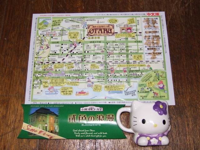 小樽音樂盒館送的巧克力,銀之鐘咖啡座的KITTY咖啡杯,還有小樽的中文版導覽圖畫的很可愛