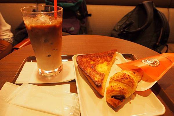 沒想到一起床窗外下起了小雨,結果原本一眼望去就能看到晴空塔的窗景就這樣消失了,今天要到日光又是在山區想必雨還是不會停,因為要到淺草站搭乘東武日光線,原本有訂了一天飯店早餐就選擇隔天在吃,今天就在上野站樓下的咖啡廳解決就好,這家咖啡的麵包可頌都是現烤熱騰騰的,填飽肚子後就轉乘銀座線到淺草準備出發囉。
