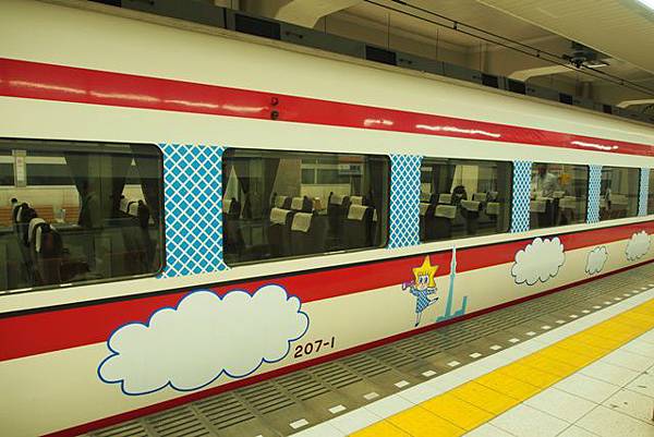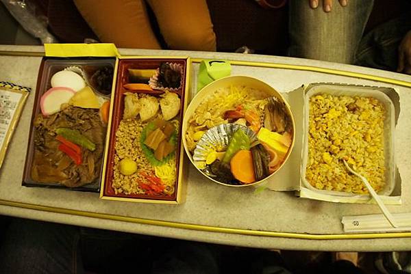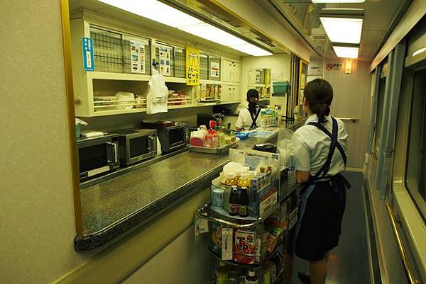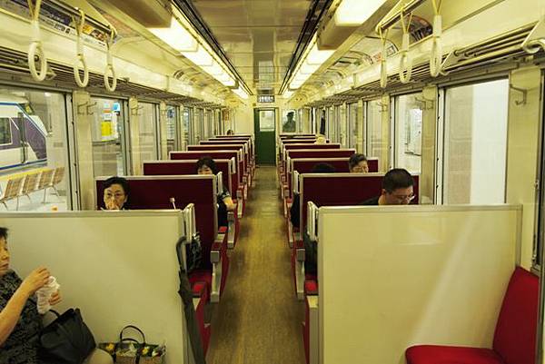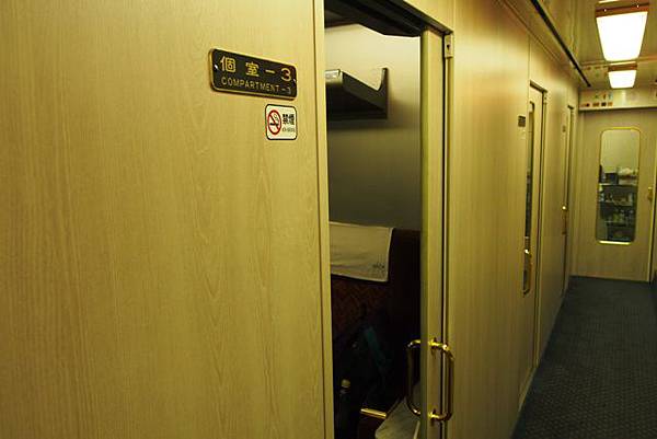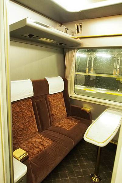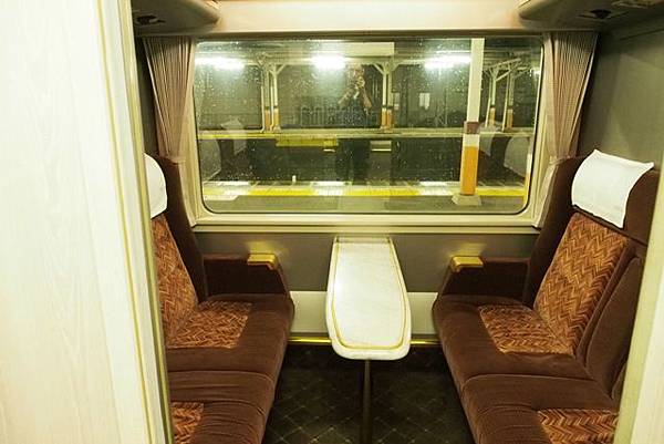 短暫的等待之後,回程要搭的特急列車來囉。我們購買的是特急的個室包廂喔,位在最前頭的6號車廂裡,裡面有6間個室,非常的寬敞,我們把行李丟進去後,直奔3號車廂的餐車去買鐵路便當,然後回到個室包廂內去享用。因為是屬於我們專用的包廂,鞋子濕透悶了一天的腳可以趁這個機會把鞋子脫起來,不用擔心會影響到其他乘客,包廂內還可以自己調整空調跟燈光喔,真是太舒適了,算一算也沒有多加太多錢,相當的值得啊。