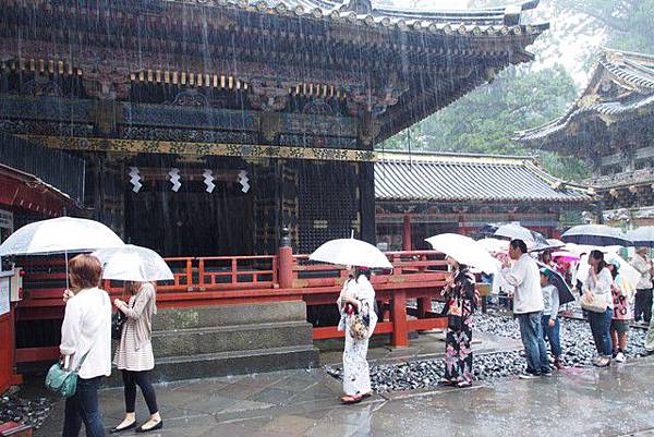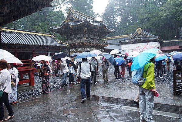 想在裡面多參觀一下,可是到處都是雨傘跟人潮,加上不停的大雨,原本很期待的日光之行想仔細參觀一番的只好粗略帶過了,匆匆進了陽明門內晃了一小圈便下來前往二荒山神社。