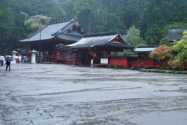 二荒山神社是日光神靈信仰中心,在這邊買了御守可惜沒有順便抽個籤,雨雖有小了一點但是濕透的鞋子讓我們難受,越來越無心戀棧,想快點找個地方休息