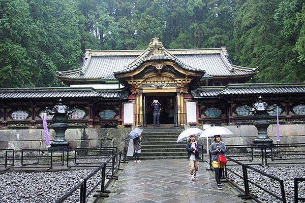 買完票後雨實在下個不停也不小,這時候真需要500萬大雨傘啊,小雨傘實在不夠力檔了前面相機後面背包就失守,旁邊的輪王寺三佛堂被包起來整修中,裡面雖然還是可以進去,不過被這糟糕天氣搞的不太開心,稍微停留一下沒待太久就直接前往東照宮。