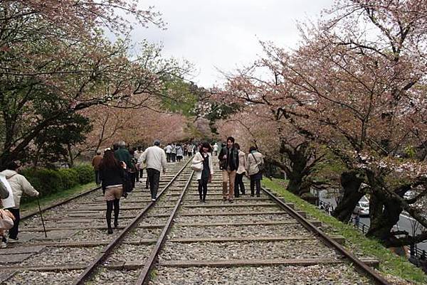 回程在山科站下車,改轉地下鐵到蹴上站,一出來往南禪寺方向走過就可以看到一旁的蹴上傾斜鐵道。已經滿開的櫻花果然經不起一點點風啊,果然已經吹雪的差不多了,不過還是跟大家一樣到鐵道上去走走,也可以嘗試著走在鐵軌上面。