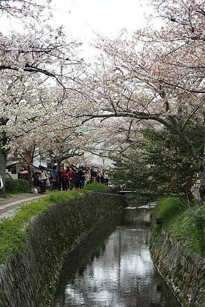 雖然知道哲學之道倖存的機會不高,不過相距不遠還是過來瞧瞧吧,到了路口因為肚子有點餓了,買了綠茶口味的車輪餅來吃吃吧,快速走過後看到了Yojiya Cafe銀閣寺店,不過果如意料中人潮已經爆炸了,所以進去看了一下就出來,又走了一段路看看前方我想繼續前進也沒啥意義了,轉彎走了出來往大馬路方向去搭公車,亂轉亂走之後,一出來就看到真如堂前的公車站牌剛好在旁邊20公尺,運氣還真好啊。