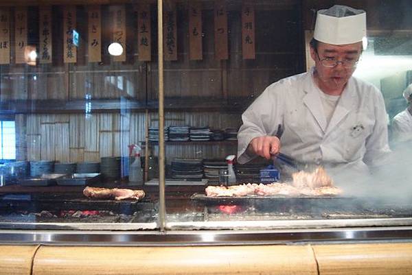 一個人不意外的都是坐在吧台前,看著師傅一邊老練的烤肉一邊等著我的午餐上桌,因為都是點完才會現場製作所以都需要稍微等待一下這點是可以理解的,好在我是12點之前就先進來當時並沒有幾個人,不過旁邊已經有一個日本人帶著2個西方人在吃了。