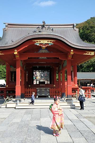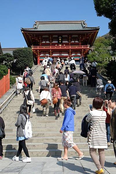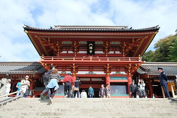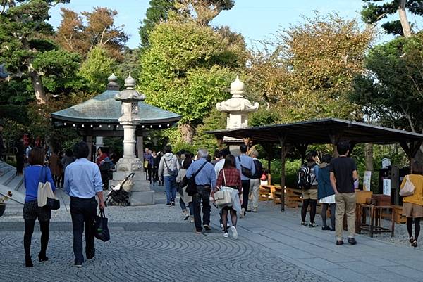 從北鐮倉一路通往鐮倉的方向正好是下坡路段,這段路上在慢跑跟騎腳踏車的人也不少,很快就可以看到鶴岡八幡宮,全家大小帶著小朋友一起穿著和服來參拜的人好多啊,不少人買御守跟抽籤。