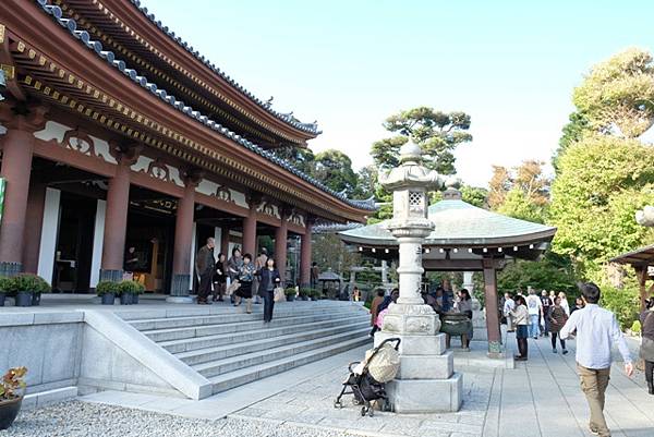 從圓覺寺往鐮倉方向繼續走去大約15分鐘,就可以看到鎌倉五山之首的建長寺,門口已經停放好幾輛的遊覽車啊,跟著人潮一起買票入內參拜,看到了有名的雲龍圖真的好美啊,如果在晚個半個月葉子開始逐漸變紅建長寺一定是更美,不過保證也是塞爆。