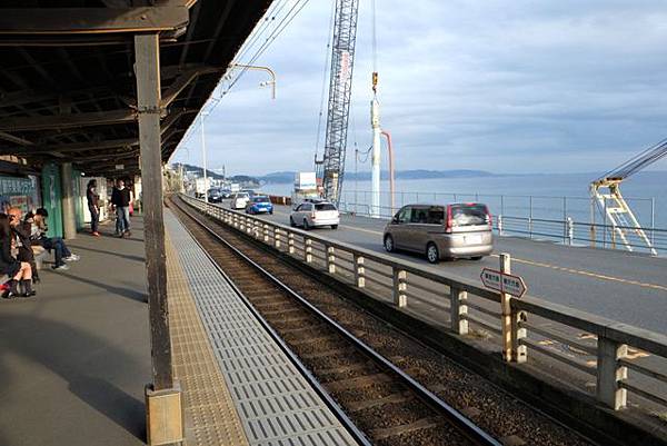 來到了江之島站,站內的休息室內正展示著台鐵的文物,電視正播放著台鐵的介紹影片,在國外看到這些真是很特別的感覺啊,從江之島站要前往江之島就得靠步行的方式了,天色也逐漸灰暗起來,不過陸續還是不少人潮往江之島方向前進。