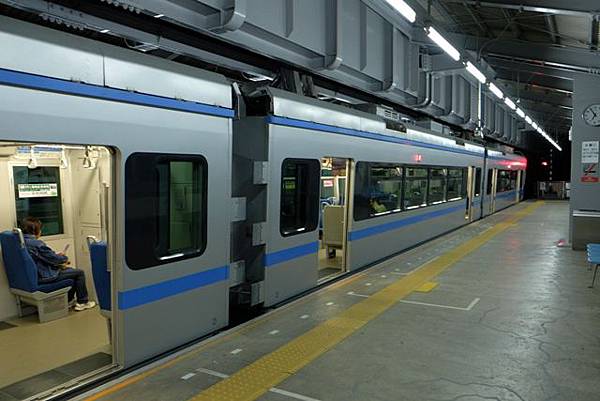 回到江之島站後,來搭看看湘南單軌電車吧,跟一般的LRT捷運不一樣的是,湘南單軌電車是以懸吊方式於半空中行駛,只是因為天黑了,看不到外面的景色,否則速度一點都不慢,想必白天搭乘起來感覺更不一樣才對。