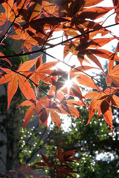 整理好行李後,準備退房然後同樣的再把行李寄送回箱根湯本車站,不過是等到要領行李時才要付費喔,這時服務人員問我是否需要搭車前往小涌谷站,我說在等10分鐘吧,先來拍拍門口那顆偷跑的紅葉。
