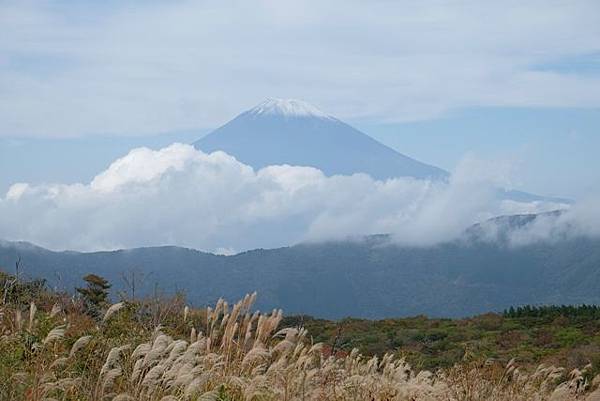 回到大涌谷繼續搭空中纜車到桃源台,於半空中也是可以看到富士山,大家總會不約而同的拿出相機來拍,到了空中纜車的終點站桃源台,排隊往下面樓層去搭海賊船的人排的好長,我是直接到外面去搭乘登山巴士前往仙石高原賞芒草。