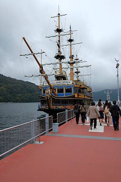 在海賊船還有特別船艙需要另外付費才能進入,不過實在沒啥能夠吸引我入內,反正也沒多久就橫越到蘆之湖的另一端箱根町港