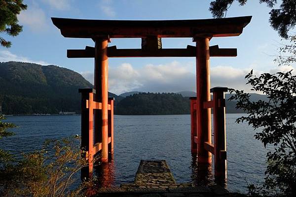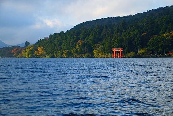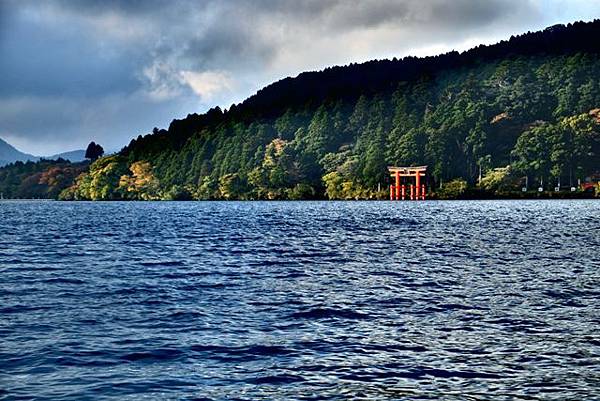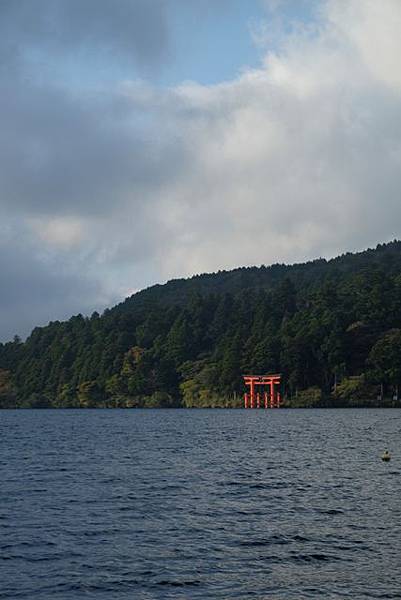 從元箱根港就能夠看到在湖旁的箱根神社鳥居,可惜就是烏雲太多了根本看不到富士山啊,所以更沒有必要進去成川美術館,直接來去箱根神社吧。