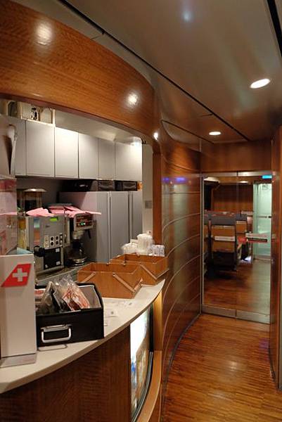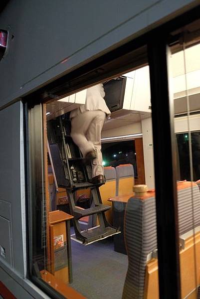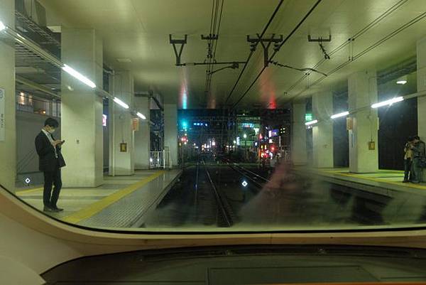 吃完晚餐來去領行李,小田急浪漫特快はこね44號駛入月台後得等待清潔人員將車廂內巡視整理後才會開放,這時剛好看到駕駛員已經在前展望席處了,因為駕駛員的位置被我搶了,他只好被趕去2樓開火車,原來是旁邊的按鈕啟動後會有樓梯放下來,駕駛員上到2樓駕駛艙內再把樓梯收起來。回程坐在前展望席的感覺很不一樣,很有速度感,感覺在彎道處也不太需要特別減速太多。