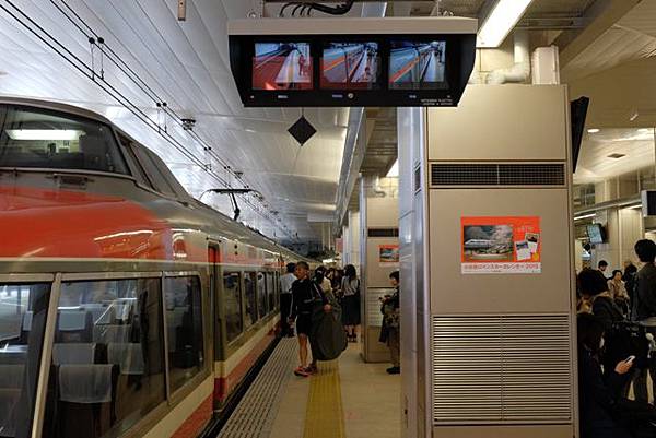 回程運氣不錯買到了前展望席第一排,因為提早進站等候的關係,はこね44號(VSE50000)進入月台後還得等待清潔人員將車廂內巡視整理後才會開放。
