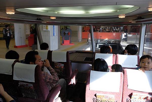 這時剛好看到駕駛員已經在前展望席處了,因為駕駛員的位置被我搶了,他只好被趕去2樓開火車,原來是旁邊的按鈕啟動後會有樓梯放下來,駕駛員上到2樓駕駛艙內再把樓梯收起來,想必很多人也一直搞不清楚駕駛員是怎麼上去開車的吧。