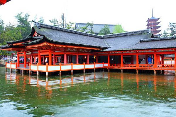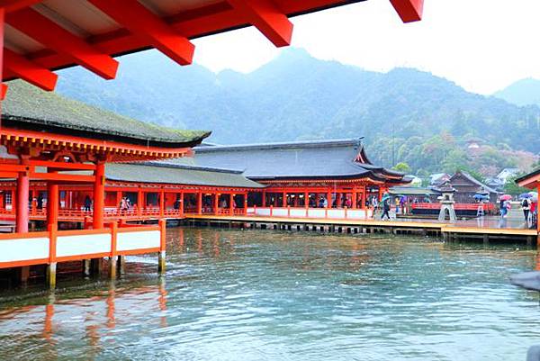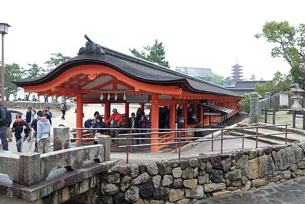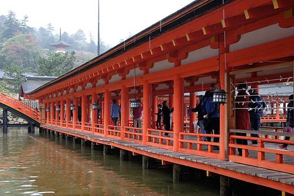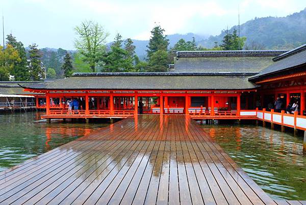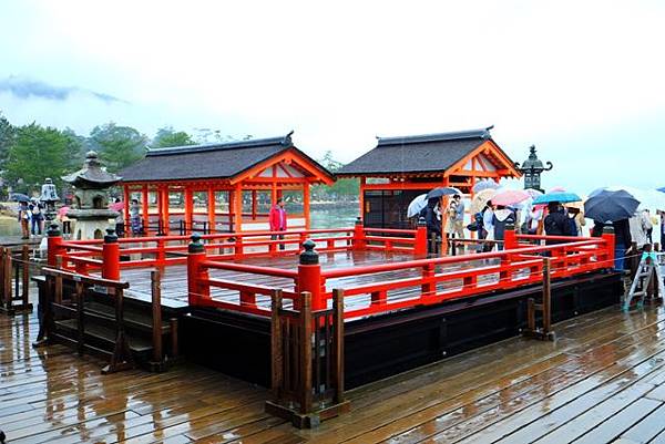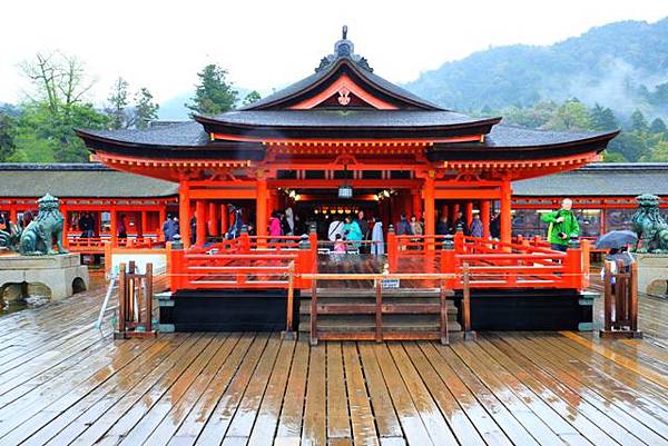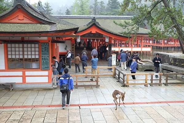 前往嚴島神社會經過表參道商店街,不過因為還算早所以才只有少許店家陸續準備開門營業,下著雨實在很不方便,好在買票進入嚴島神社後也算暫時可以躲雨,不過雨勢果真如氣象預報一樣逐漸就變小了,春雨中的嚴島神社還是一樣美的令人難忘啊,來嚴島神社的歐美人不少,倒是陸客一路上都很難遇到,出了嚴島神社後旁邊的寶物館也是值得一逛的,之前的科南套票可以免費入館,可惜現在只好買票進入看了。