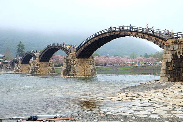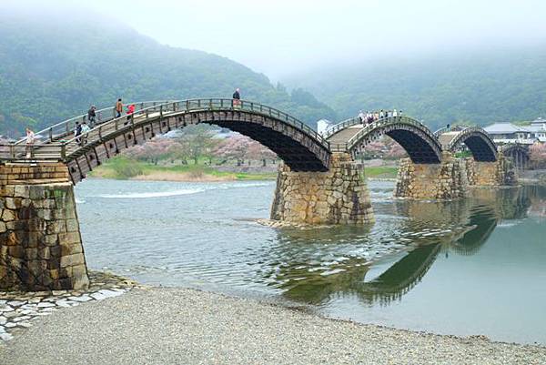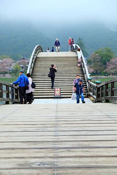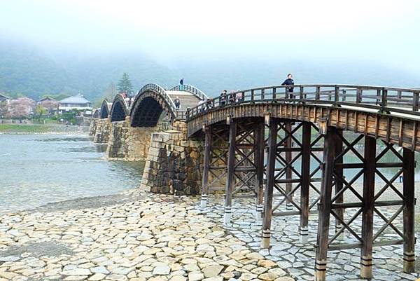 日本三大名橋之一的錦帶橋果然名不虛傳,只可惜映襯錦帶橋的櫻花都已經開始吹雪了,走到錦帶橋對面的吉香公園後前往搭乘纜車順便去岩國城,在山下明明都還很正常,怎知道纜車一到達山頂,發現岩國城幾乎都快消失在山嵐中了,繼續留在這邊也沒啥看頭了,趕緊搭了下一班纜車下山去,看看時間還是準備從岩國站回去廣島吧。