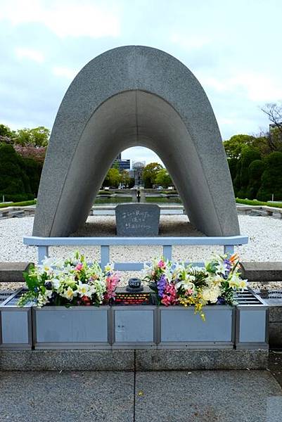 可以看到遠方就是原爆資料館,慰靈碑前正有人在清掃並換上鮮花,原爆資料館入館費只要50日幣真的是收個意思意思的,裡面放了當初原子彈在廣島投下的一些資料跟歷史介紹。從進入和平紀念公園一直來到了原爆資料館,真的會讓人對這歷史的一切開始充滿感傷的氣氛,櫻花謝了明年還會繼續綻放,然而戰爭所造成的傷害卻永遠不會消失。