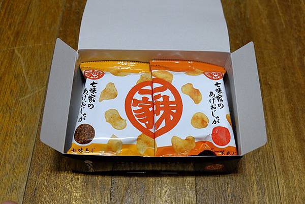 來到神戶港區旁的MOSAIC廣場湊巧又看到一家calbee+,很多種類都買過了,想買的薯條三兄弟或三姊妹這邊也不會有貨,最後還是買了一盒Calbee與京都的七味家本舖合作的這款calbee七味家のあげおじゃが。