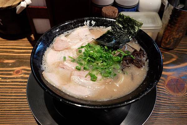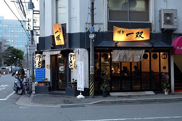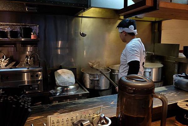 幾家發源於九州的拉麵店一蘭、一風堂及一幸舍等等其實在台灣也都開了分店,這次打算來去吃吃看不一樣的店家,從茿紫口步行10分鐘內就可以看到這家一双,這時才5點並沒有太多客人,買了餐卷點了一碗豚骨叉燒拉麵,爐子上正在熬煮湯頭,很不一樣的是湯頭內還有骨髓之類的很多東西在熬煮,直接舀起來過濾到碗內。