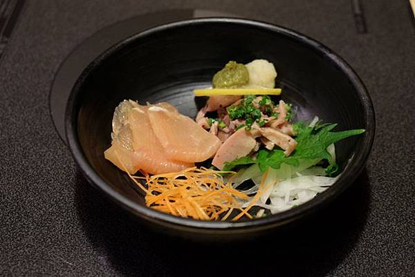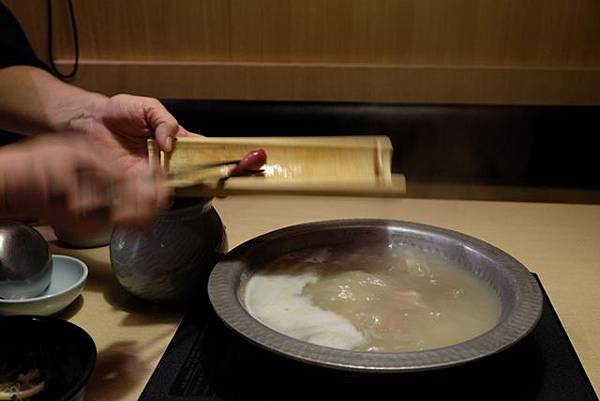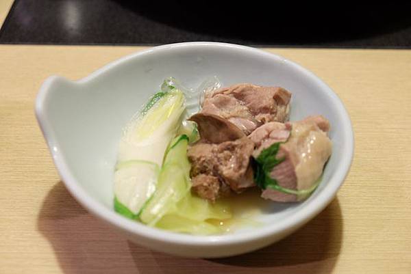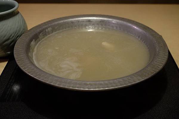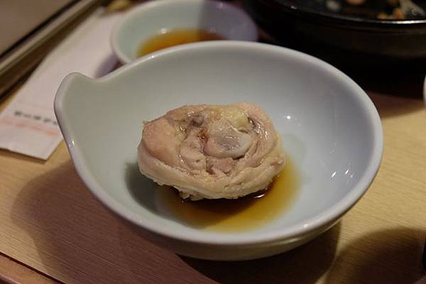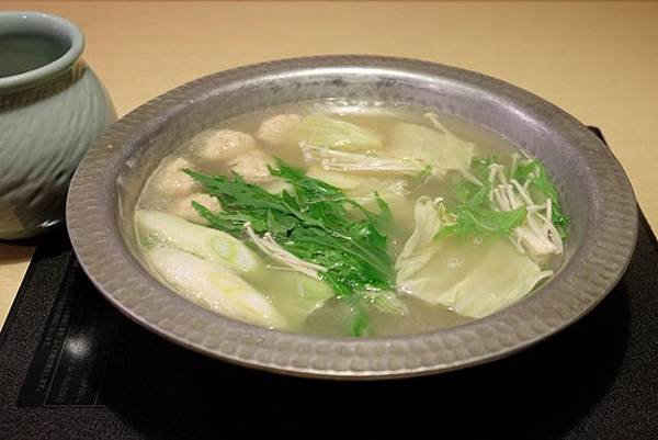 進去點了套餐後,上了小菜跟雞肉刺身,沒想到雞肉也可以吃生的只是不太習慣就是,接著就是把雞肉鍋端上來,服務員會來幫你把雞肉丸子放下鍋,接著雞肝內臟等也陸續丟下去,最後就是讓你自己青菜下鍋。重頭戲當然最後會把米飯放下鍋,將雞湯精華煮成雜炊水炊粥,這個水炊粥真的好好吃啊,一口接著一口忍不住吃光光。