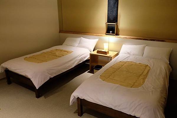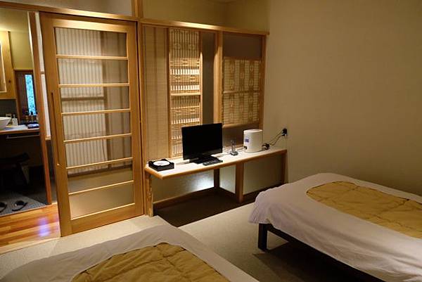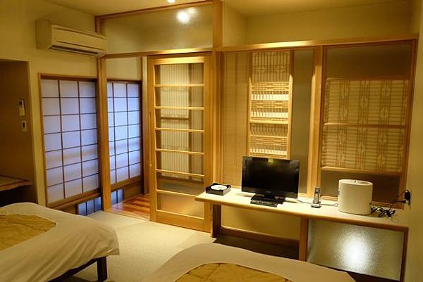 我的房間是ひとの間有2層樓,床跟泡澡的地方在2樓,是個雙床的房型,兩層樓都有電視,這樣的空間即使是2個人住還是好大,何況我只有1個人啊。