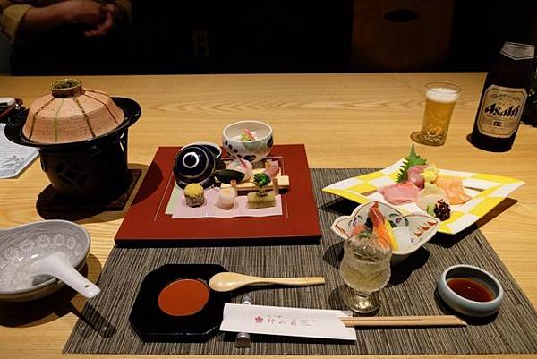 晚餐是在個室裡面享用,因為対山荘房間數只有12間,所以並不會有太多的人住宿,特別喜歡這樣的溫泉旅館啊。晚餐真的是很棒,一定先來瓶啤酒的。