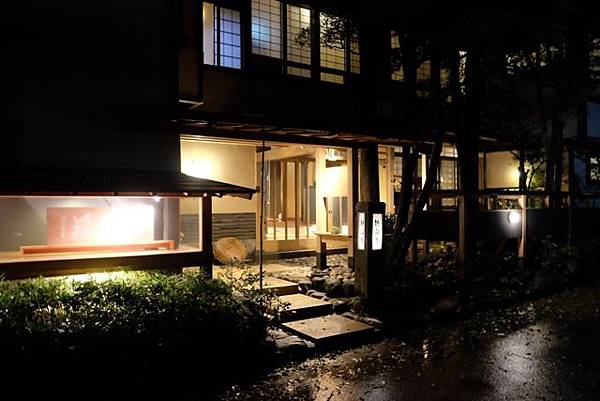 在JALAN尋找飯店時,因為預算關係最後選擇住的是ひとえにここゆいづ ねの湯対山荘,在JALAN上分數超過4.5分的基本上有住過的都蠻不錯的。対山荘是於昭和27年開業的旅館,於平成18年時裝修,由建築家香川真二操刀設計,裡面只有12間客房,三層樓的設計整間旅館的範圍不大,所以不像周圍那幾家名宿有廣大的庭園景色可以欣賞。