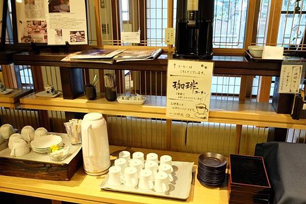 然後吃完早餐可以到大廳自行取用咖啡,在飯店內角落找個沙發坐下來,順手也拿本旅遊雜誌來翻翻,這邊也有賣點餅乾特產,只是種類不多,也有賣沐浴洗臉用品及所用的漱口杯。