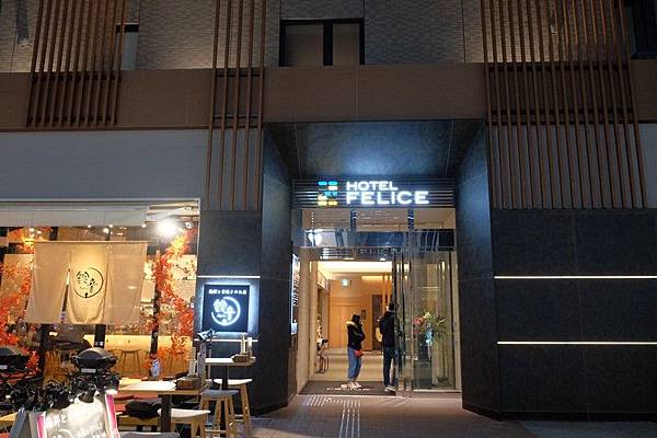 飯店一樓門前晚上有賣東西可以喝酒吃串燒,一晚雙床房的房價大約1萬日幣覺得還算合理,附近逛街吃東西也很方便。