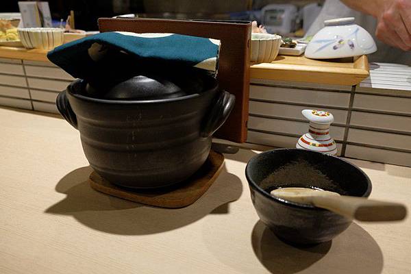 於730準時抵達後因人數不多直接就坐在吧檯前,主廚忙著準備我們的早餐。旬菜いまり提供的「京番菜」也就是京都人的家庭料理京料理,早餐只有一種京の朝ごはん,還有就是該店特色的土鍋飯,這一鍋飯大概2人飯而已其實份量不多,我看大家都能夠全部吃光光。