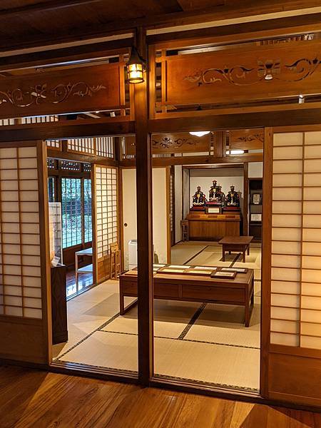 主建物由檜木打造,進入館內需脫鞋,一進門就聞到濃郁的檜木香氣,禢禢米踩踏起來感覺就更像在日式庭園內,室內寧靜也有冷氣空調,另外還搭配許多的文物展覽,介紹宜蘭的歷史和風土文物。
