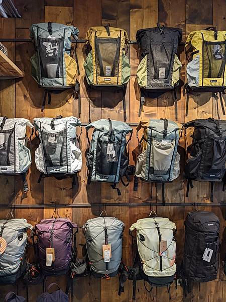 一樓提供露營及登山會需要的各式器具,背包、睡袋及登山休閒鞋等等
