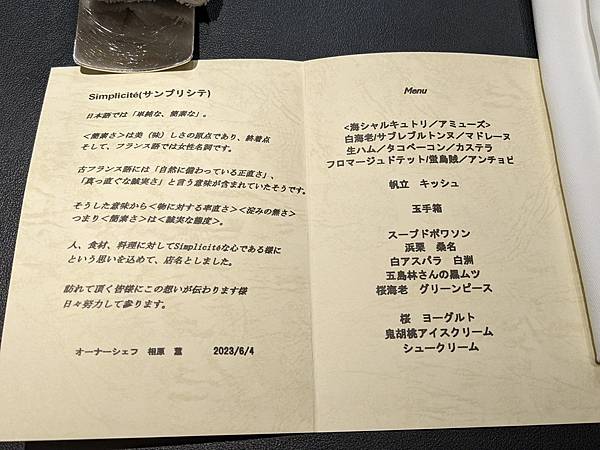 東京米其林一星法式餐廳Simplicité(サンプリシテ)