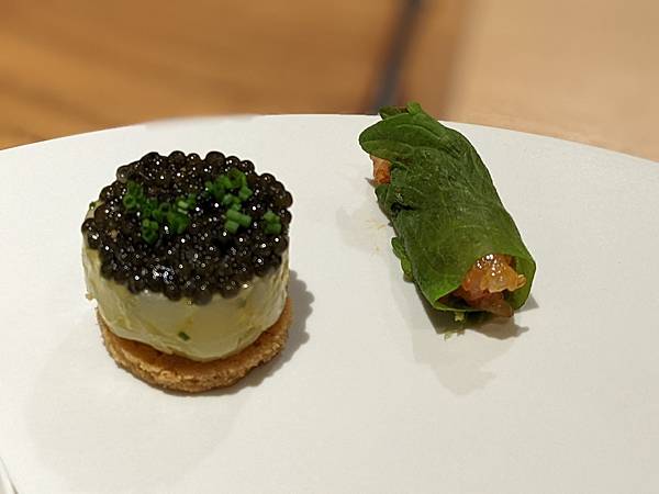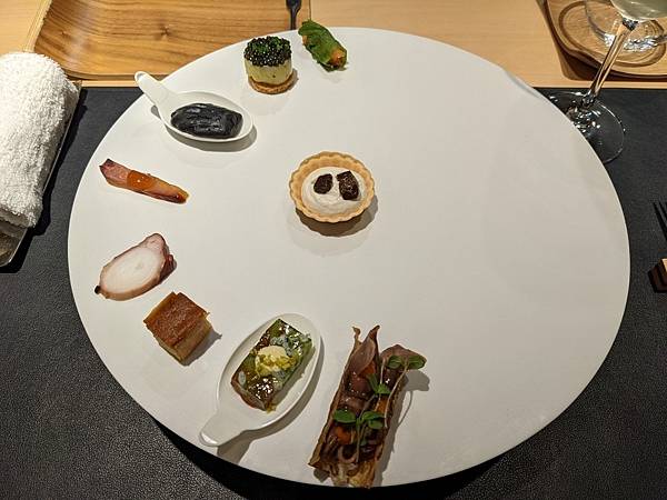 第一道料理就很豐富啊,如果是兩人用餐就是擺滿這整盤了,從上面或下面開始吃起都可以