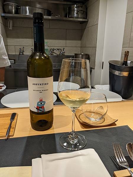 點了杯白葡萄酒還有今天的菜單