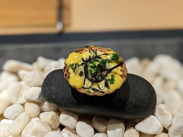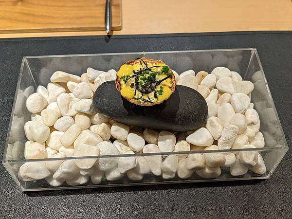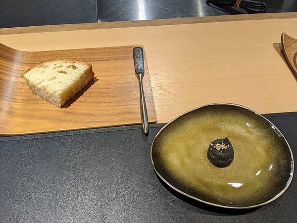 因為只有1個人,所以被安排坐在板前的位置,問了我是從台灣來的之後,告訴我原來旁邊有對中年夫婦也是台灣人,不過他們的日文很好,可以跟主廚很流利的交談。