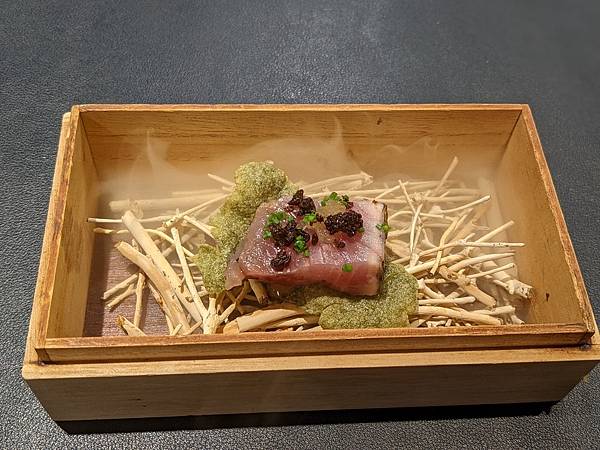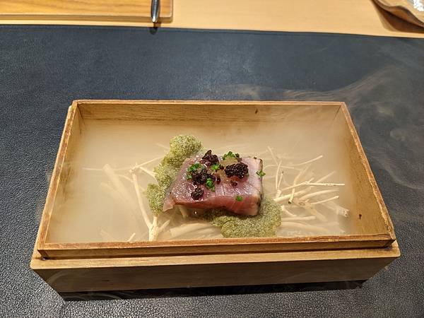 寶物盒,打開時有煙霧效果,是剛剛有看到主廚做的稻草炙烤鰹魚