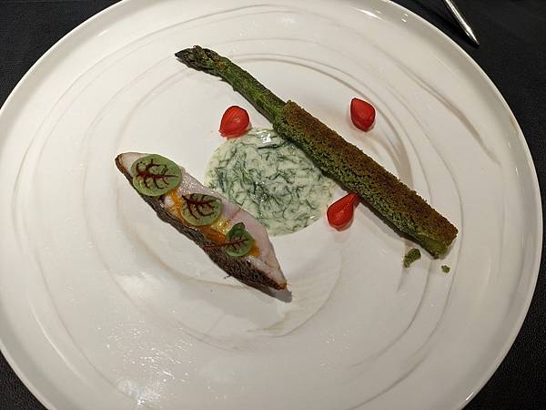 魚料理是海鱸魚+北海道的玉蘆筍