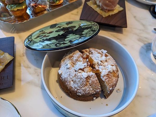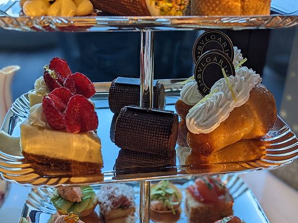 每款甜點跟鹹食都超乎期待的好吃,藍莓塔上還有金箔點綴,之前之法餐點過的甜點ババオラム也有在架上。