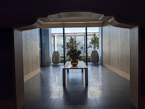 時間接近11:30,東京中城八重洲1樓有個專屬連通道,直接利用這個通道走過去,就會看到飯店人員詢問,告訴他們是來吃下午茶的,直接搭乘電梯抵達40樓,走出電梯一開始還搞不太清楚門口在哪,沿著長廊走到底看到遠方應該是門口才對,走過去就自動開門了,飯店服務人員跟我們確認後,就帶我們入座。