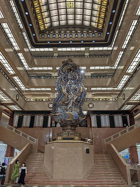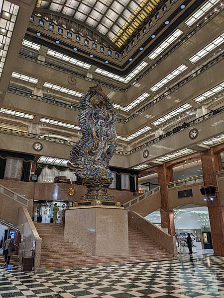 離開後再走到附近LOFT看看行李箱,接著搭乘銀座線到三越前站,曾經過幾次都沒走進來逛的三越百貨本店,門口放著石獅子,建築本身也是日本國家重要文化財,裡面挑高設計在當年應該是獨樹一格相當特別的吧,5層樓高天女像藝術品真是令人嘆為觀止忍不住停下腳步多拍幾張照。