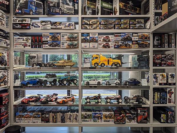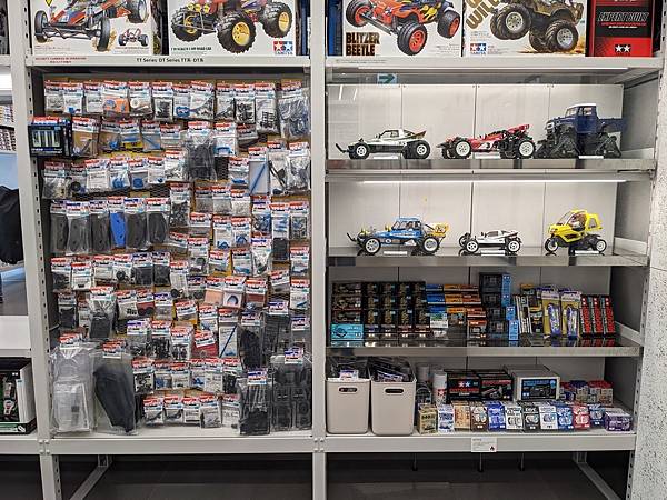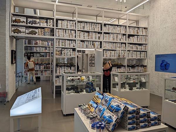 裡面田宮商品琳瑯滿目多達6000種,大型貨架蜿蜒從地面排列至天花板,打造出特別的賣場陳列方式,各類最新塑膠模型、遙控車、相關零件及紀念T-shirt等產品應有盡有。