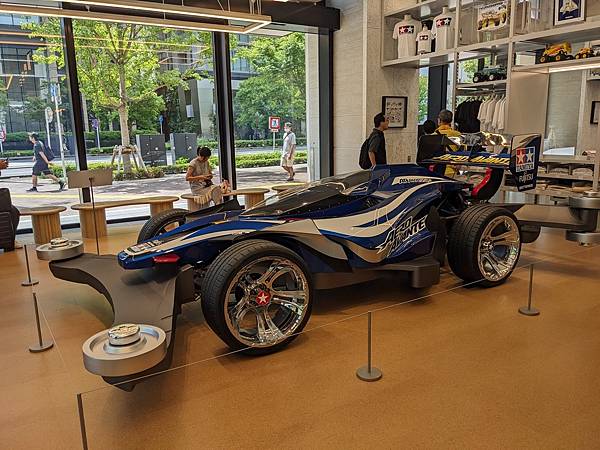 TAMIYA近年來最讓人熟知的就是四驅車了,在這裡放著一輛「AERO AVANTE前衛者」四驅車1:1 比例模型,讓大家可以拍照欣賞。
