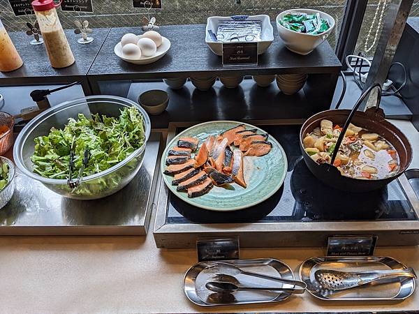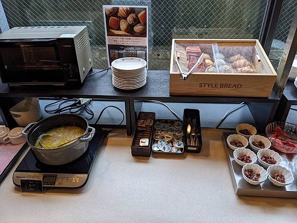 畢竟在成田站東口這邊沒啥店家,直接在飯店餐廳吃早餐是最好的方式,早餐種類算還蠻豐富的,也有外帶杯可以裝咖啡拿回房間慢慢喝。