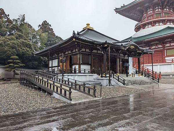 回到房間後還在思考是要直接拿著雨傘走到成田山新勝寺嗎?畢竟也有一段距離說遠不遠,飯店前也有公車站牌但似乎也不是直接停在新勝寺門口,乾脆就搭計程車了吧,退房會寄放行李,走到成田站東口的計程車招呼站就上車了,直接開到新勝寺門口也才日幣600,也不用擔心雨勢太大鞋子都濕掉。