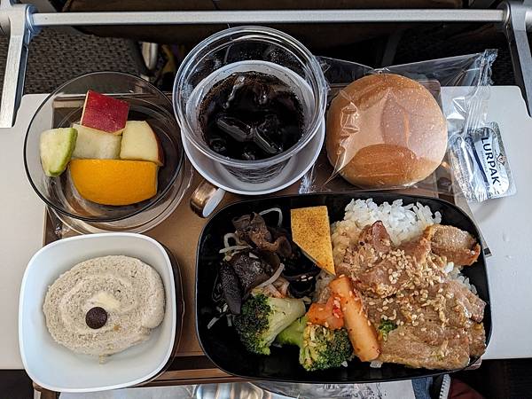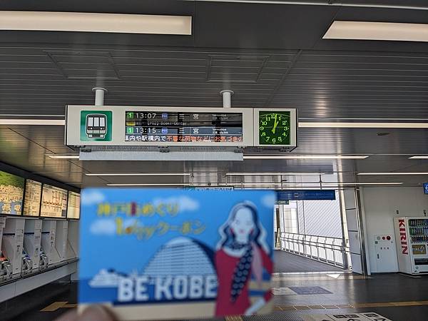 機上餐點就只提供一種燒肉飯,飛機準備下降時停止使用廁所,結果連機上影音也不能用耳機,說是耳機線會影響逃生安全?抵達神戶機場大約是日本時間12:20,很快就完成入境手續拿到行李,神戶空港要前往市區得從第二航廈走到第一航廈搭乘Port Liner,雖然看看時間也來得及在搭二航廈直接搭12:57的公車前往三宮,還是慢慢走去一航廈。原本看看時間下一班Port Liner的時間是13:00,刷卡直接進去似乎沒問題,不過下一班是13:07,就到櫃檯買張神戶街遊一日券。